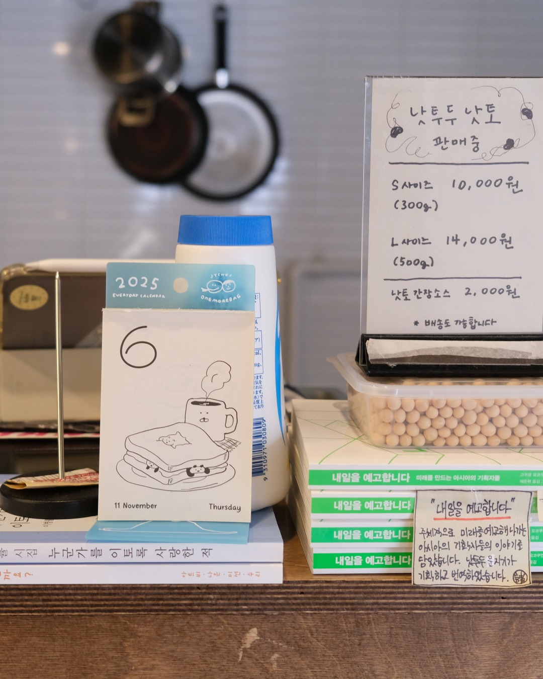 후지와라 식품에서 두 달간 인턴식으로 일했어요. 오사카에 살 때 종종 가던 교토의 게스트 하우스에서 방을 저렴하게 빌려주셔서 거기서 지냈죠. 재밌긴 재밌었어요. 대표님 어머니한테 일을 배우면서 말을 못 알아듣는다고 혼나기도 많이 혼났고요. 방언 때문에 알아듣기가 어려웠거든요. (웃음) 힘들기도 했어요. 한겨울에 해도 안 뜬 새벽부터 일어나 출근을 했는데, 숙소가 고택을 개조한 곳이라 걸을 때마다 삐걱거리고 단열이 잘 안돼 히터를 틀어도 엄청 추웠죠. 그래도 ‘하기로 했으니까’라는 생각으로 임했어요. 소규모 낫토 가게의 운영 방식을 배우기 위해서 후지와라의 대표님이 소개해주신 오사카의 라쿠다자카낫토공방(らくだ坂納豆工房, @rakudazaka_natto)을 몇 차례 방문해서 도움도 받았죠.