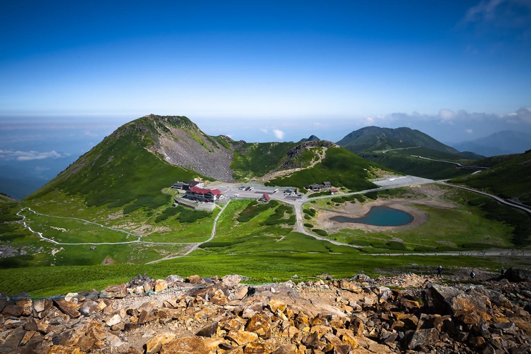 호노키다이라(ほおのき平) 정류장에서 노리쿠라 스카이라인(Norikura Skyline) 버스로 갈아타면, 일본에서 가장 높은 곳에 들어선 버스 정류장인 노리쿠라타다미다이라(乗鞍畳平)까지 약 50분 만에 다다를 수 있다. 해발 고도는 2,702미터. 정류장 주변에는 사시사철 색과 형이 변하는 야생의 보고가 그림처럼 드넓게 펼쳐진다. 평지에 가까운 고원 지대가 형성되어 있는데, 투명한 호수와 설산의 흔적이 이곳의 고도를 실감하게 해준다. 잘 정비된 등산로에서 주변을 하이킹해도 좋고, 주변의 봉우리를 과감하게 오르내려도 문제없다. 정상인 겐가미네(剣ヶ峰)까지는 걸어서 약 1시간 30분. 몇 번의 밭은 숨만 참으면, 해발 3,000미터에서 바라보는 북알프스의 풍경을 선물로 쟁취할 수 있다. 장엄함과 상쾌함이 온몸의 기운을 북돋아주는 것은 물론이고.