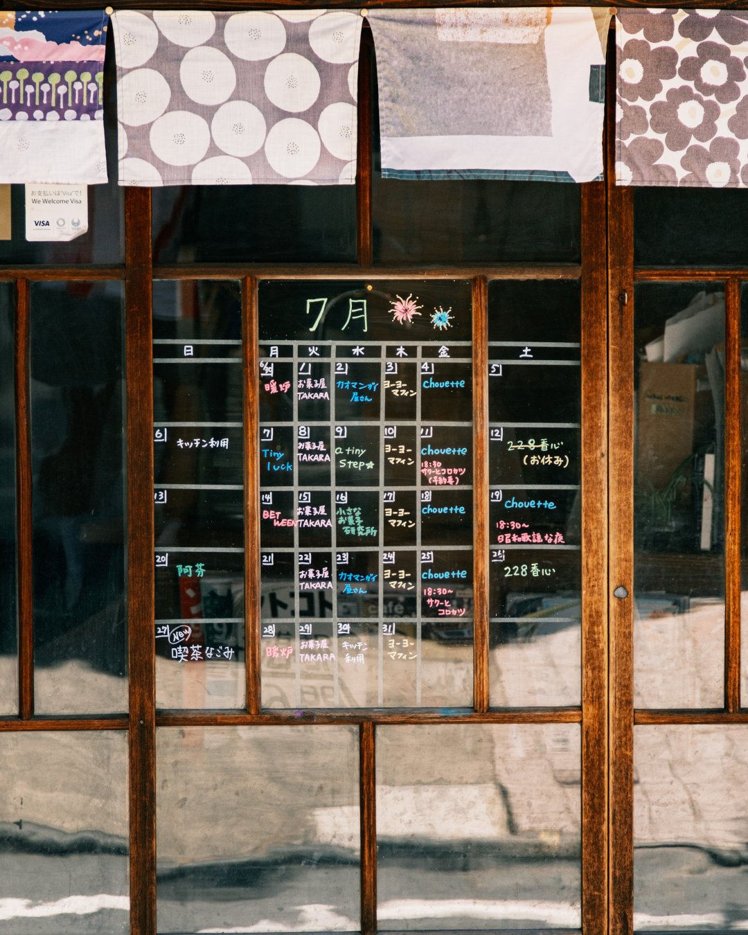 아침에는 숙박객의 커뮤니티 공간으로, 낮부터는 셰어 키친으로 운영합니다. 주로 과자나 디저트를 만드는 사람들이 사용하고 있습니다. 어떤 날은 카레, 어떤 날은 빙수처럼 메뉴가 바뀌기도 합니다. 오늘은 빙수예요. 매일 메뉴가 달라지고, 스케줄이 게시판에 적혀 있습니다. 처음에는 직접 카페를 운영했지만 경험이 없다 보니 잘 안 돼서, 지금은 전문가들이 쓰는 공유 주방으로 바꿨습니다.