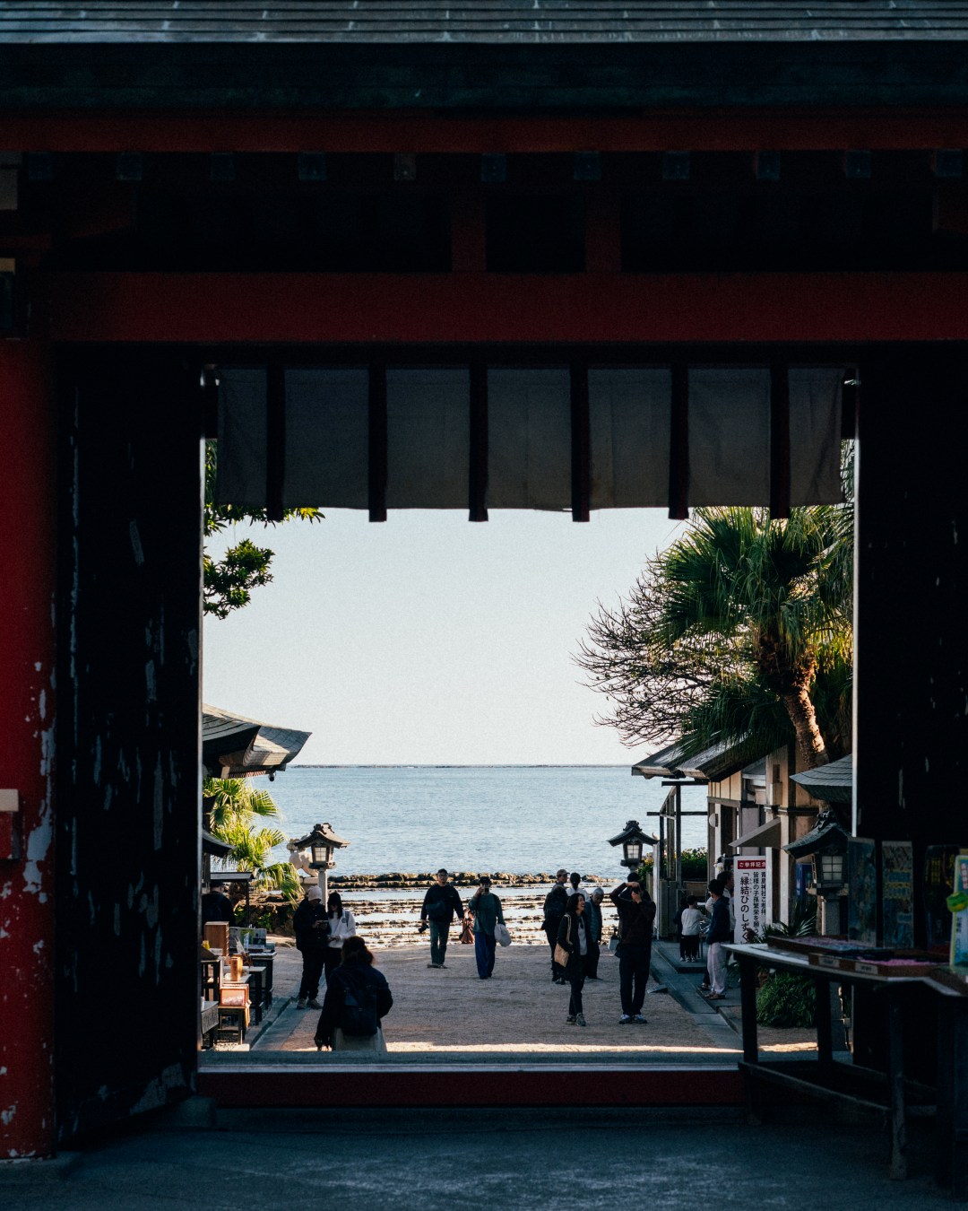 아오시마 해변 남쪽 끝에 떠 있는 아오시마는 섬 같지 않은 섬이다. 육지에서 100미터가량 떨어진 섬까지 도보교로 연결돼 있어 걸어서 갈 수 있고, 열대 식물이 울창하게 우거져 멀리서 보면 작은 숲처럼 보이기도 한다. 둘레 1.5킬로미터의 아담한 섬에 사람들의 발길이 이어지는 이유는 두 가지. ‘도깨비의 빨래판(鬼の洗濯板)’이라 불리는 바위 지형과 아오시마 신사(青島神社) 때문이다. 일본의 국가천연기념물로 지정된 도깨비의 빨래판은 섬 주위로 펼쳐져 있는 독특한 바위 지형이다. 수백만 년 전 융기한 해저 수성암(水成巖)이 파도에 깎여 돌기와 홈이 규칙적으로 반복되는 지금의 모습이 되었다. 섬 입구를 지키는 붉은 도리이를 지나 안쪽으로 걸음을 옮기면 야자수에 둘러싸인 이국적인 분위기의 신사가 모습을 드러낸다. 일본 신화 속 부부신을 모신 곳으로, 연애와 결혼, 가정의 평안을 기원하는 이들의 성지다. 섬 전체를 신성한 땅으로 여겨 일반인의 출입의 금지하던 과거와 달리 현재는 미야자키를 대표하는 관광 명소가 되었지만 신비로운 분위기는 여전하다.